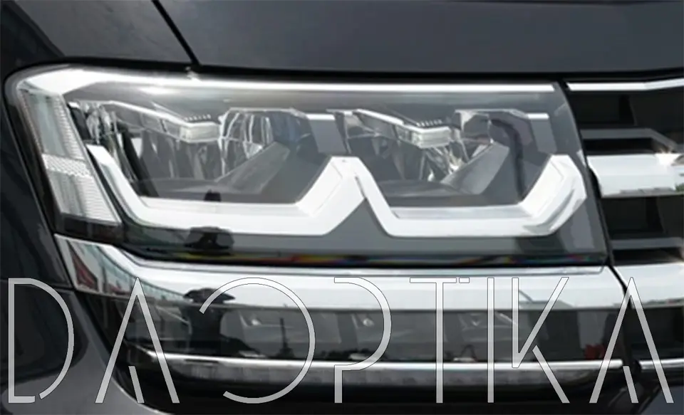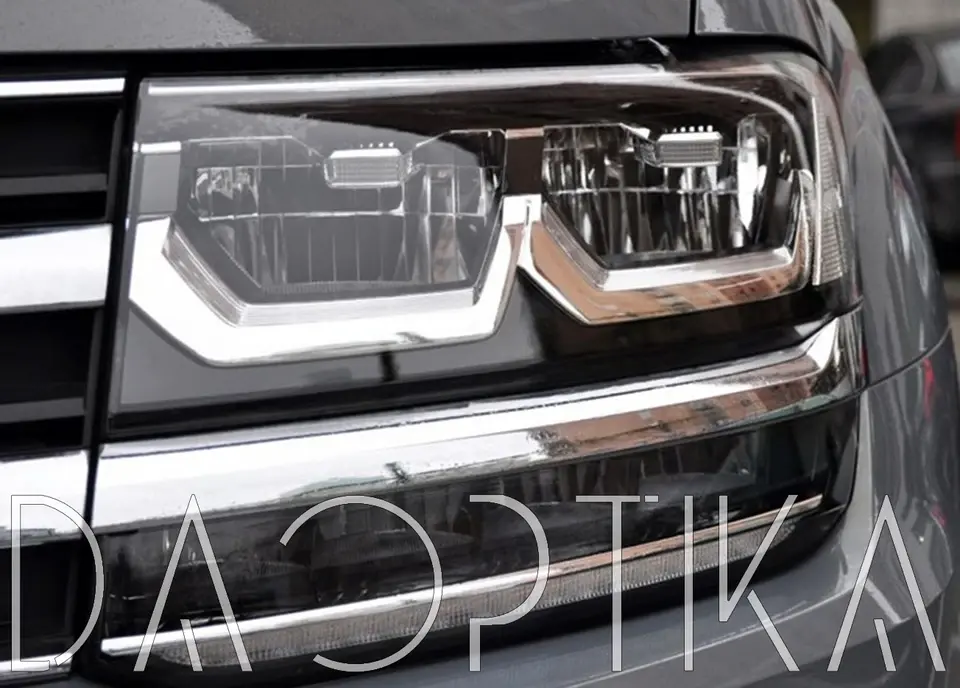 Стекло правой фары из оптического поликарбоната с защитным лаком для замены оригинального стекола фары на Volkswagen Teramont 2017-2022 1 поколение