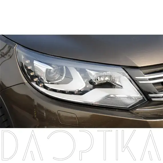 Стекло правой фары из оптического поликарбоната с защитным лаком для замены оригинального стекола фары на Volkswagen Tiguan 2011-2018 1 поколение [рестайлинг]