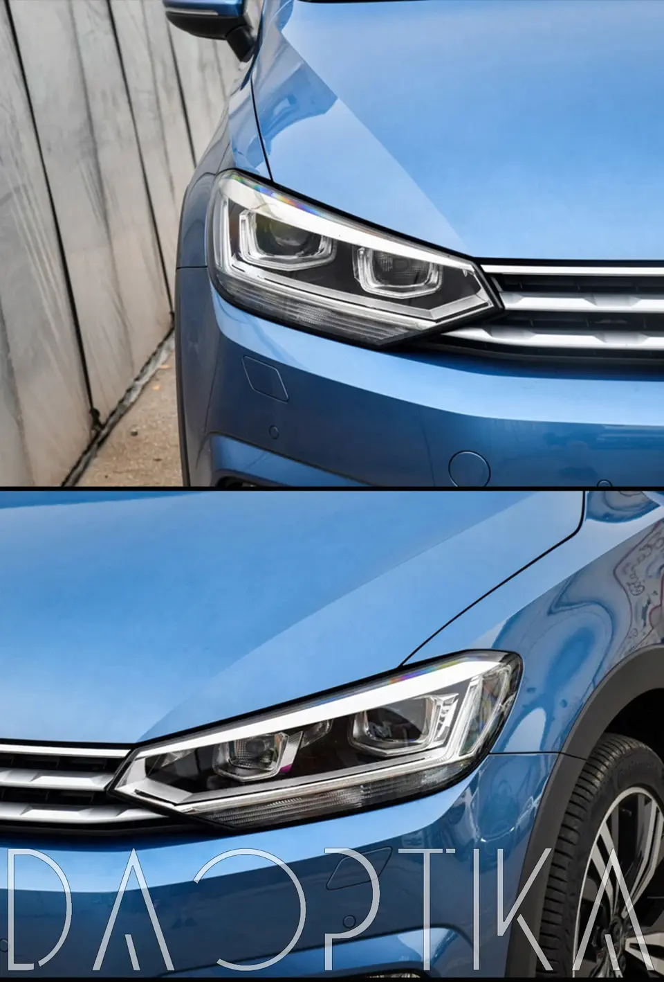 Стекло правой фары из оптического поликарбоната с защитным лаком для замены оригинального стекола фары на Volkswagen Touran 2015-2025 2 поколение