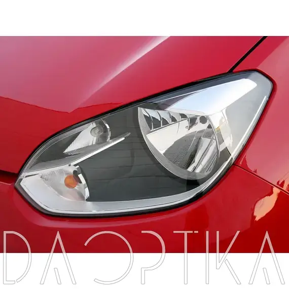 Стекло правой фары из оптического поликарбоната с защитным лаком для замены оригинального стекола фары на Volkswagen Up! 2012-2016 1 поколение