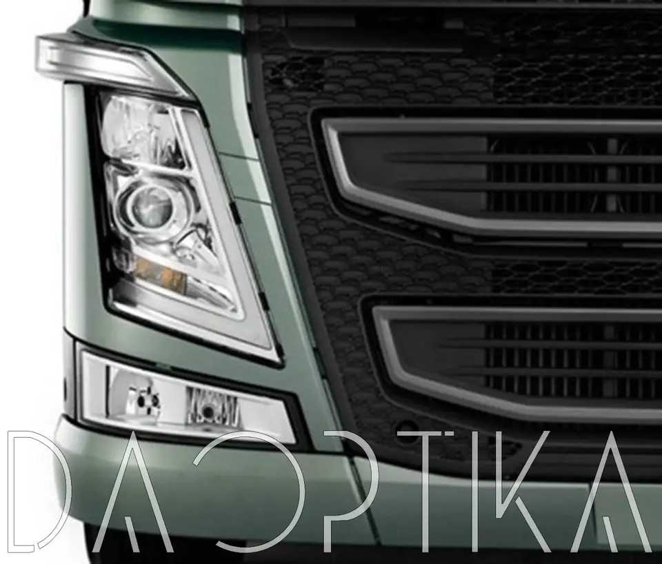 Стекло правой фары из оптического поликарбоната с защитным лаком для замены оригинального стекола фары на Volvo FM FH 2012-2021 3 поколение