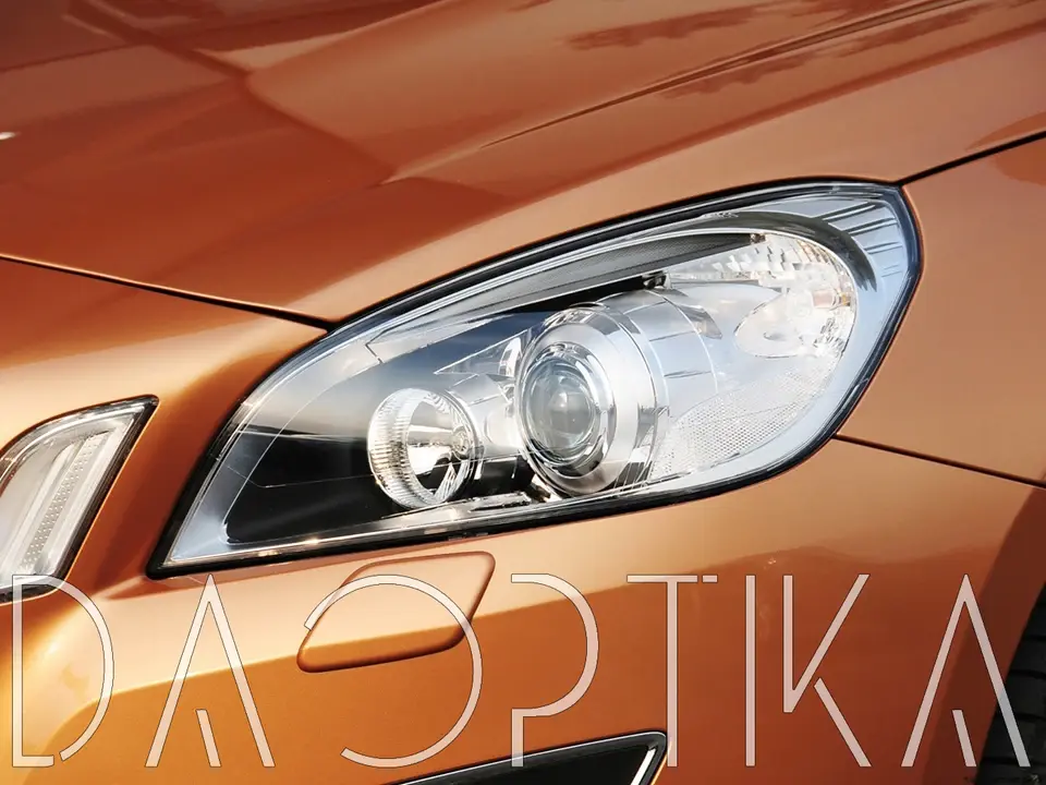 Стекло правой фары из оптического поликарбоната с защитным лаком для замены оригинального стекола фары на Volvo S60 2010-2013 2 поколение