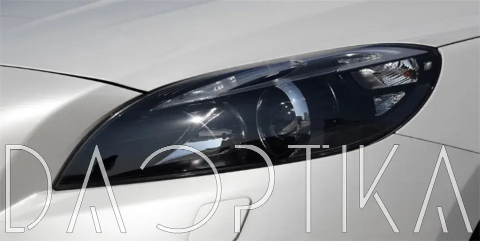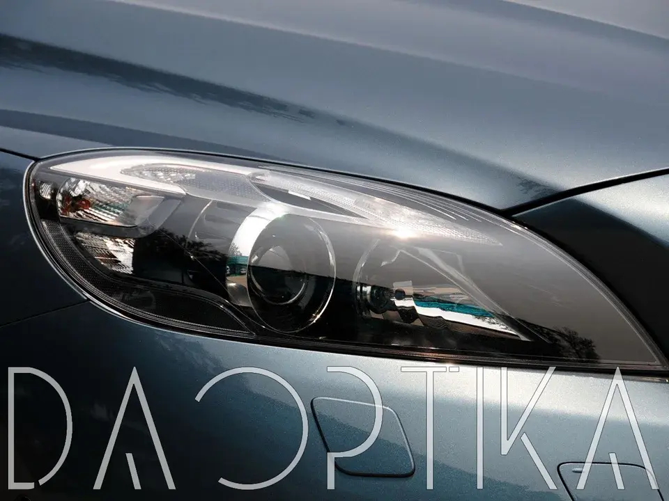 Стекло правой фары из оптического поликарбоната с защитным лаком для замены оригинального стекола фары на Volvo V40 2012-2016 2 поколение