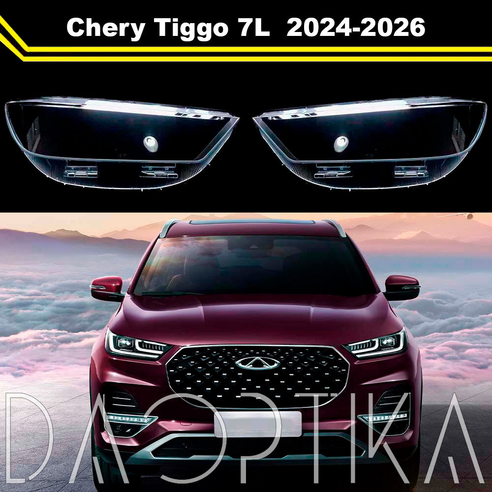 Стекло правой фары из оптического поликарбоната с защитным лаком для замены оригинального стекола фары на Chery Tiggo 7L 2024-2026