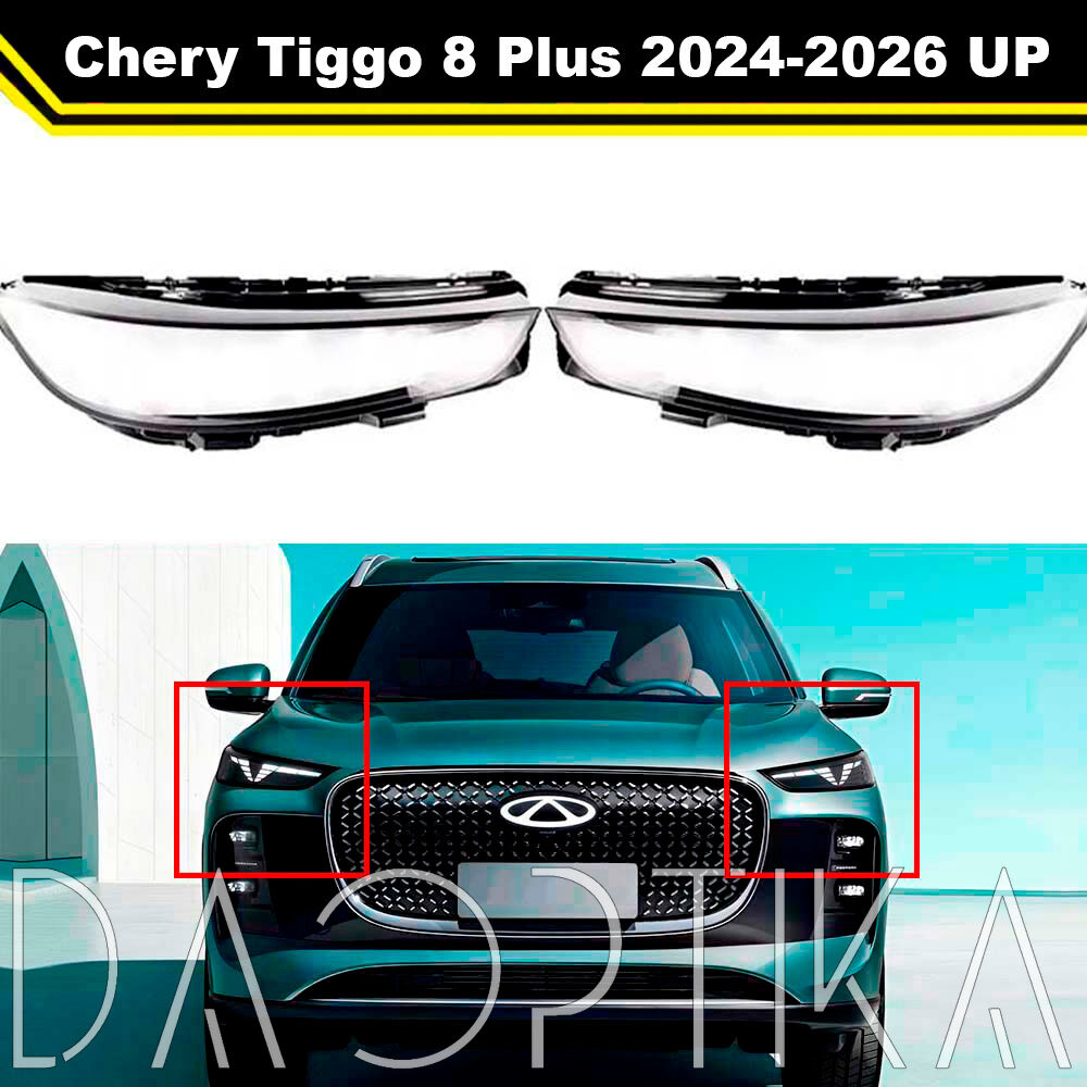 Стекло правой фары из оптического поликарбоната с защитным лаком для замены оригинального стекола фары на Chery Tiggo 8 Plus 2024-2026 1 [3-й рестайлинг]