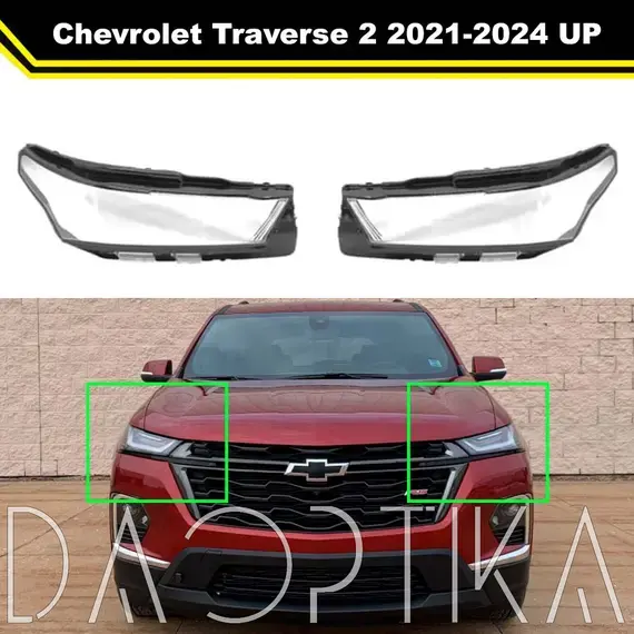 Стекло правой фары из оптического поликарбоната с защитным лаком для замены оригинального стекола фары на Chevrolet Traverse 2021-2024 2 поколение [рестайлинг]