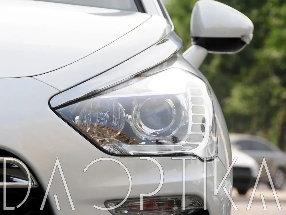 Стекло правой фары из оптического поликарбоната с защитным лаком для замены оригинального стекола фары на Citroen DS5 2012-2015 1 поколение