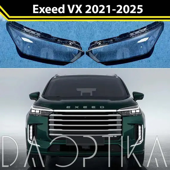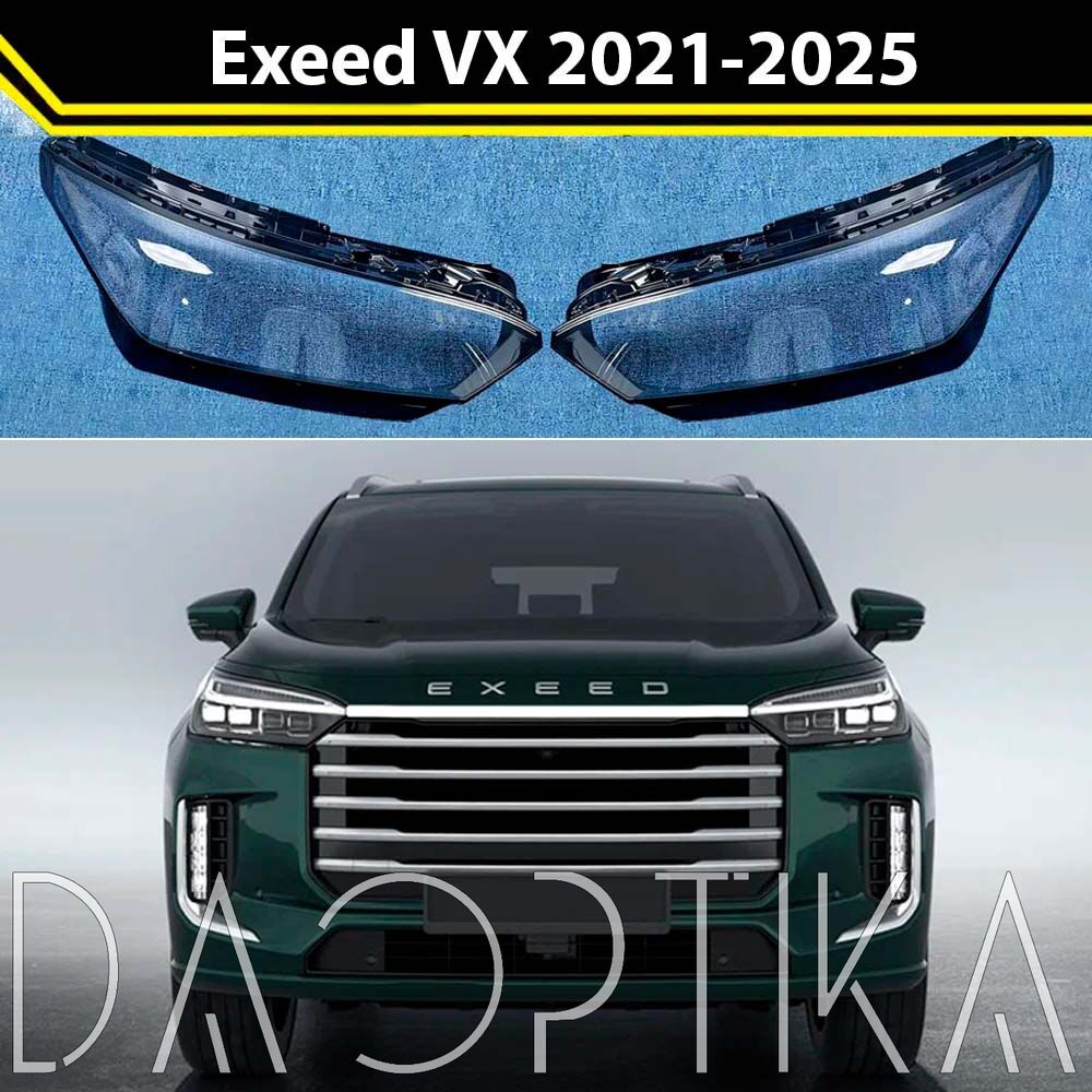 Стекло правой фары из оптического поликарбоната с защитным лаком для замены оригинального стекола фары на Exeed VX 2021-2025 1 поколение