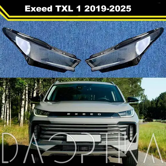 Стекло правой фары из оптического поликарбоната с защитным лаком для замены оригинального стекола фары на Exeed TXL 2019-2025 1 поколение