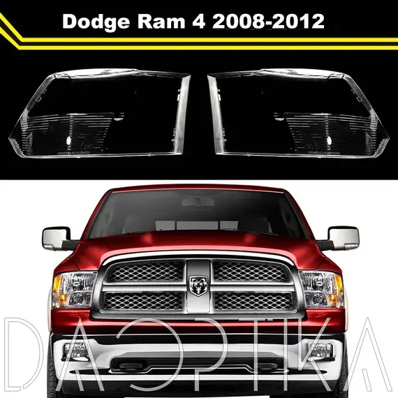 Стекло правой фары из оптического поликарбоната с защитным лаком для замены оригинального стекола фары на Dodge Ram 2008-2012 4 поколение