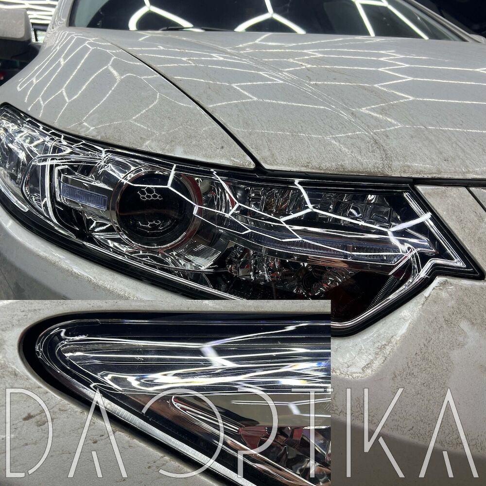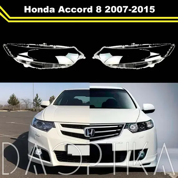 Стекло правой фары из оптического поликарбоната с защитным лаком для замены оригинального стекола фары на Honda Accord 2007-2015 8 поколение