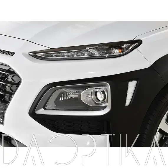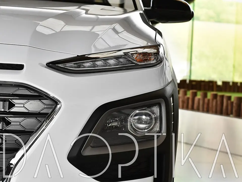 Стекло правой фары из оптического поликарбоната с защитным лаком для замены оригинального стекола фары на Hyundai Kona 2017-2021 1 поколение