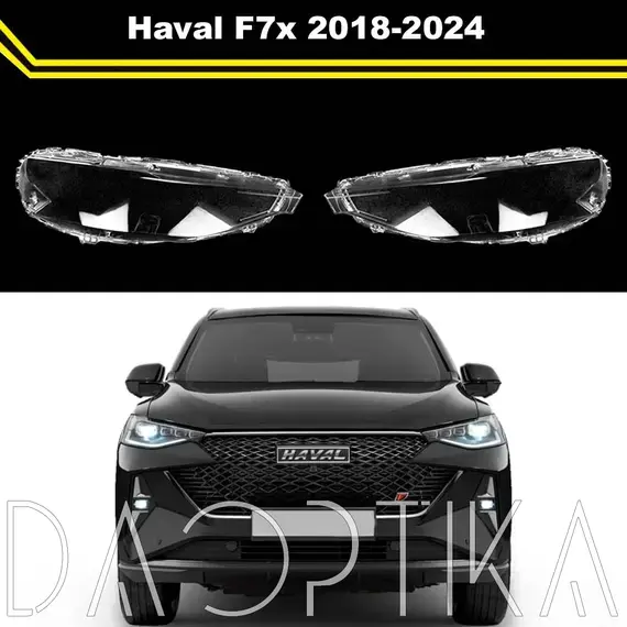 Стекло правой фары из оптического поликарбоната с защитным лаком для замены оригинального стекола фары на Haval F7x 2018-2024 1 поколение