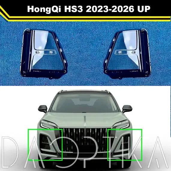 Стекло правой фары из оптического поликарбоната с защитным лаком для замены оригинального стекола фары на HongQi HS3 2023-2026