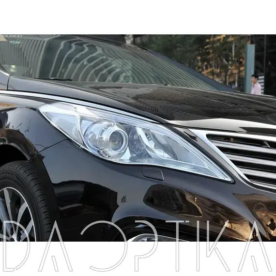 Стекло правой фары из оптического поликарбоната с защитным лаком для замены оригинального стекола фары на Hyundai Grandeur 2011-2016 HG