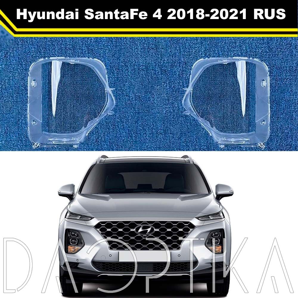 Стекло правой фары из оптического поликарбоната с защитным лаком для замены оригинального стекола фары на Hyundai Santa Fe 2018-2021 TM IV