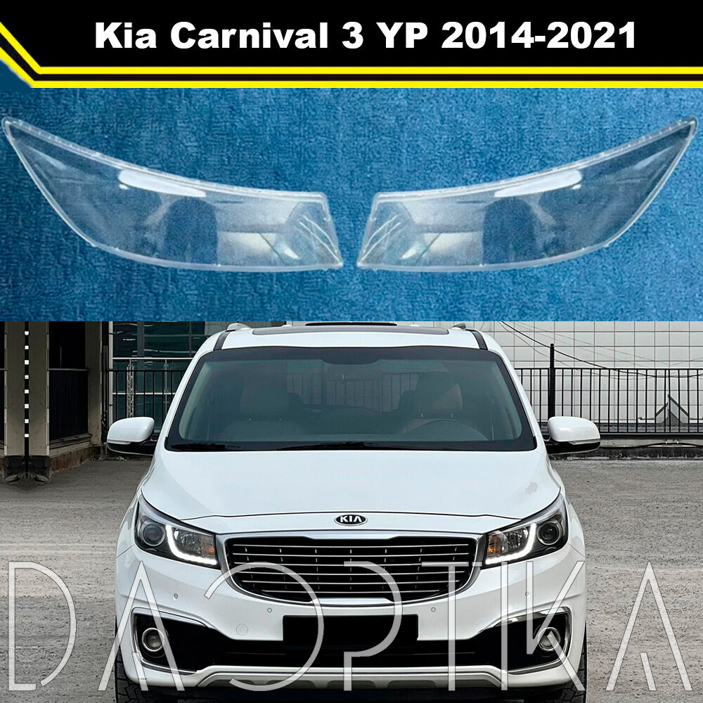 Стекло правой фары из оптического поликарбоната с защитным лаком для замены оригинального стекола фары на Kia Carnival 2014-2021 YP 3 поколение