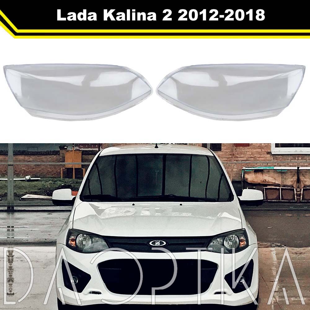 Стекло правой фары из оптического поликарбоната с защитным лаком для замены оригинального стекола фары на Lada (ВАЗ) Kalina (Калина) 2012-2018 2 поколение