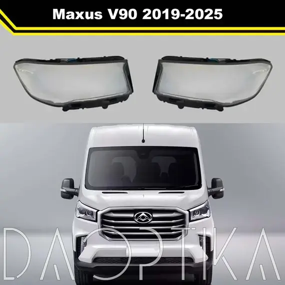 Стекло правой фары из оптического поликарбоната с защитным лаком для замены оригинального стекола фары на Maxus V90 2019-2025