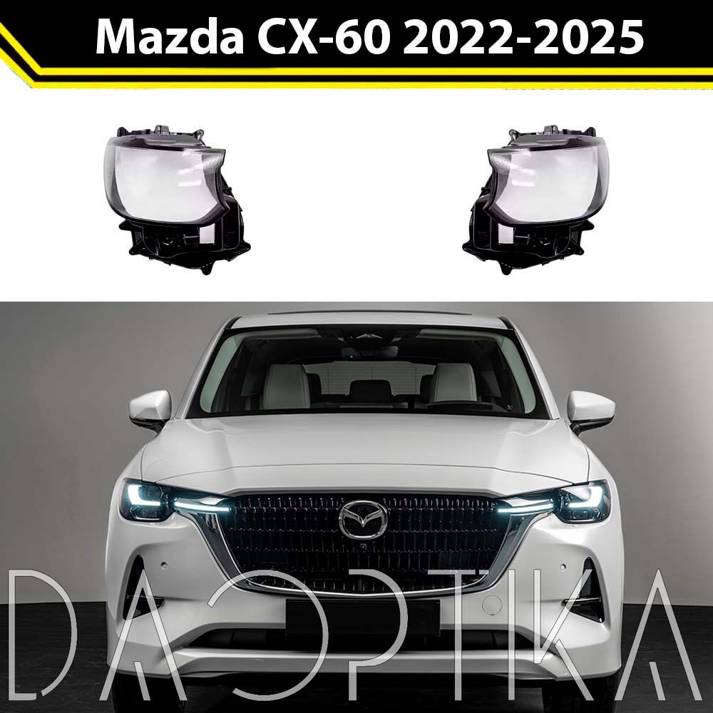 Стекло правой фары из оптического поликарбоната с защитным лаком для замены оригинального стекола фары на Mazda CX-60 2022-2025