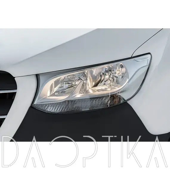 Стекло правой фары из оптического поликарбоната с защитным лаком для замены оригинального стекола фары на Mercedes-Benz Sprinter 2019-2026 W907/W910