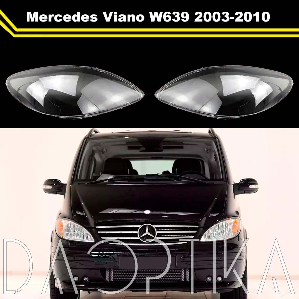Стекло правой фары из оптического поликарбоната с защитным лаком для замены оригинального стекола фары на Mercedes-Benz Viano 2003-2010 W639
