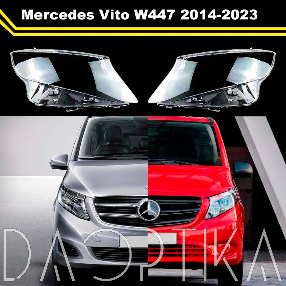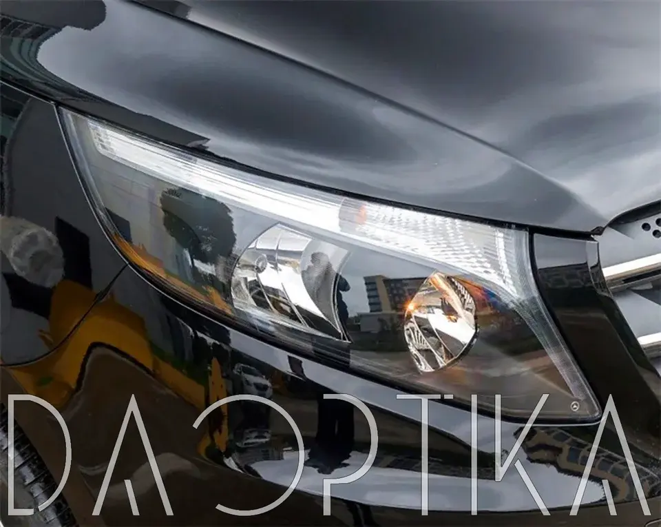 Стекло правой фары из оптического поликарбоната с защитным лаком для замены оригинального стекола фары на Mercedes-Benz Vito 2014-2023 W447