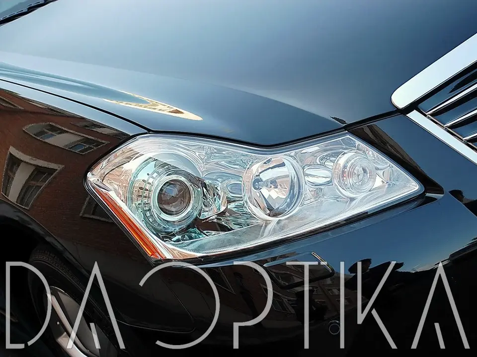 Стекло правой фары из оптического поликарбоната с защитным лаком для замены оригинального стекола фары на Nissan Fuga 2004-2007 Y50