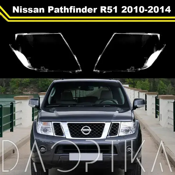 Стекло правой фары из оптического поликарбоната с защитным лаком для замены оригинального стекола фары на Nissan Pathfinder 2010-2014 R51 [рестайлинг]