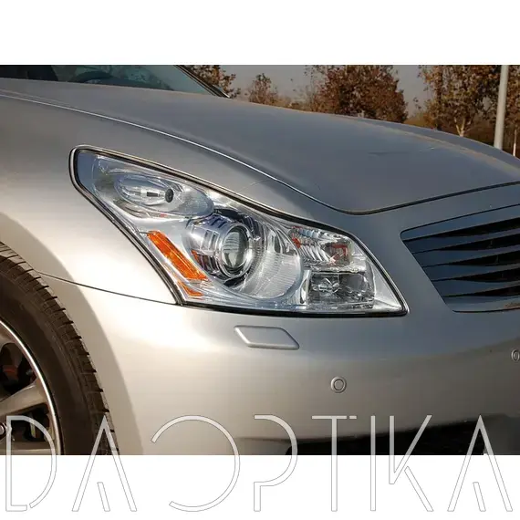 Стекло правой фары из оптического поликарбоната с защитным лаком для замены оригинального стекола фары на Nissan Skyline 2006-2010 V36