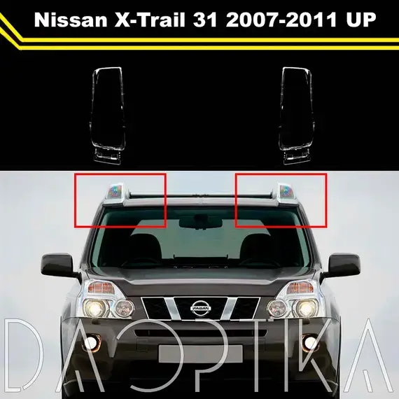 Стекло правой фары из оптического поликарбоната с защитным лаком для замены оригинального стекола фары на Nissan X-Trail 2007-2011 T31