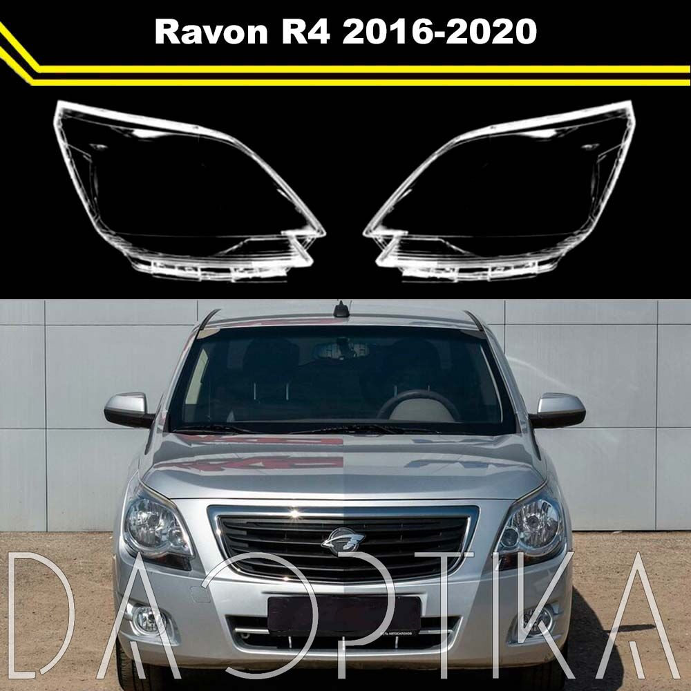 Стекло правой фары из оптического поликарбоната с защитным лаком для замены оригинального стекола фары на Ravon R4 2016-2020 1 поколение