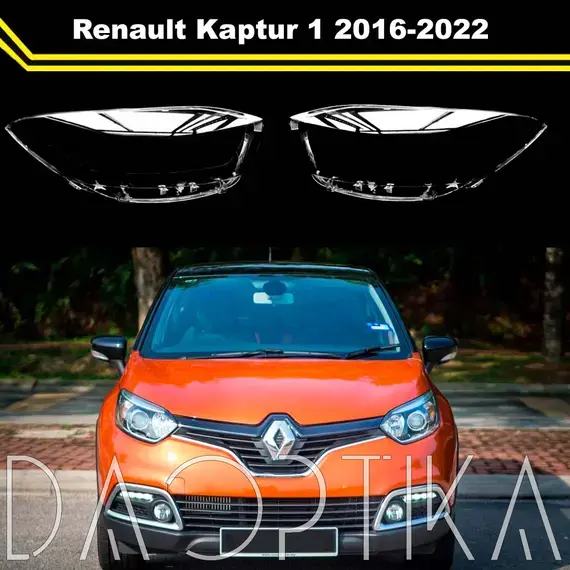 Стекло правой фары из оптического поликарбоната с защитным лаком для замены оригинального стекола фары на Renault Kaptur 2016-2022 1 поколение