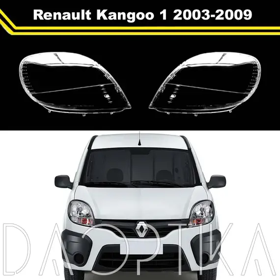 Стекло правой фары из оптического поликарбоната с защитным лаком для замены оригинального стекола фары на Renault Kangoo 2003-2009 1 поколение [рестайлинг]