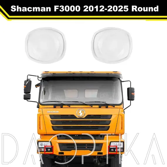 Стекло правой фары из оптического поликарбоната с защитным лаком для замены оригинального стекола фары на Shacman F3000 2012-2025
