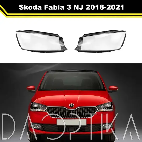 Стекло правой фары из оптического поликарбоната с защитным лаком для замены оригинального стекола фары на Skoda Fabia 2018-2021