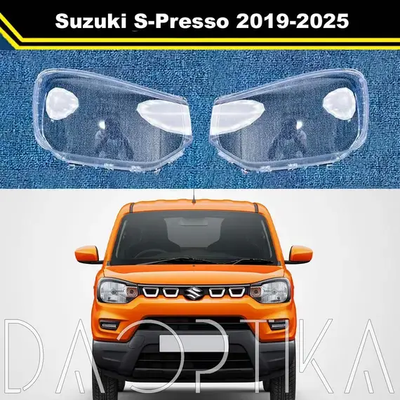 Стекло правой фары из оптического поликарбоната с защитным лаком для замены оригинального стекола фары на Suzuki S-Presso 2019-2025