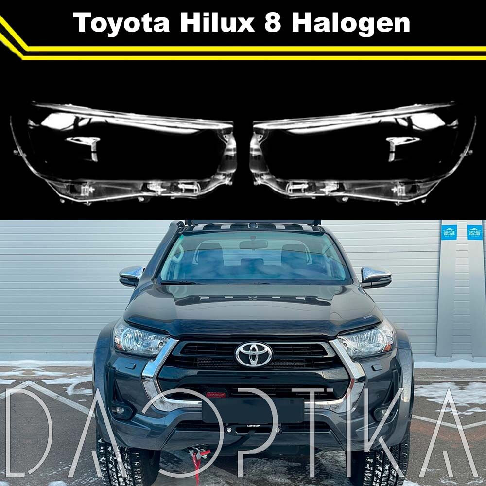 Стекло правой фары из оптического поликарбоната с защитным лаком для замены оригинального стекола фары на Toyota Hilux 2019-2025 8 поколение [рестайлинг]