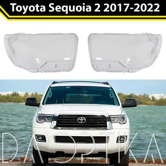 Стекло правой фары из оптического поликарбоната с защитным лаком для замены оригинального стекола фары на Toyota Sequoia 2017-2022 2 поколение [рестайлинг]
