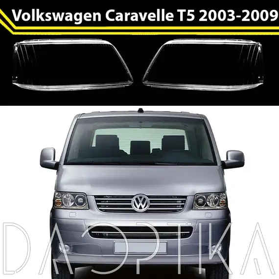 Стекло правой фары из оптического поликарбоната с защитным лаком для замены оригинального стекола фары на Volkswagen Caravelle 2003-2009 T5
