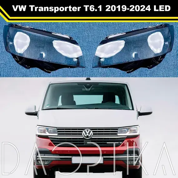 Стекло правой фары из оптического поликарбоната с защитным лаком для замены оригинального стекола фары на Volkswagen Transporter 2019-2024 T6.1 [рестайлинг]