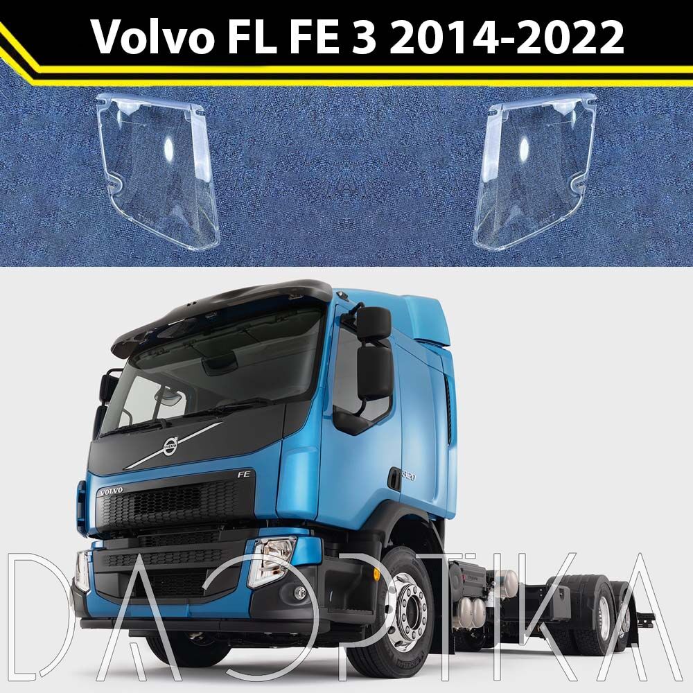 Стекло правой фары из оптического поликарбоната с защитным лаком для замены оригинального стекола фары на Volvo FL FE 2014-2022 3 поколение
