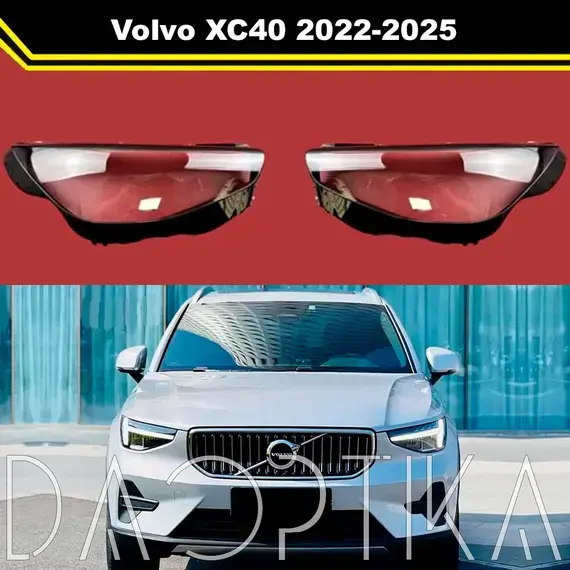 Стекло правой фары из оптического поликарбоната с защитным лаком для замены оригинального стекола фары на Volvo XC40 2022-2025 1 поколение [рестайлинг]