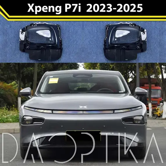 Стекло правой фары из оптического поликарбоната с защитным лаком для замены оригинального стекола фары на Xpeng P7i 2023-2025